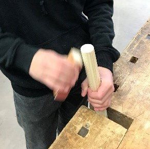 Wir haben mit den Auszubildenden im 1. Lehrjahr der "Fachpraktiker Holztechnik" und mit Herrn Pichler gearbeitet. Am Ende haben wir noch zusammen gespielt. Wir fanden es abwechslungsreich und es hat Spaß gemacht.