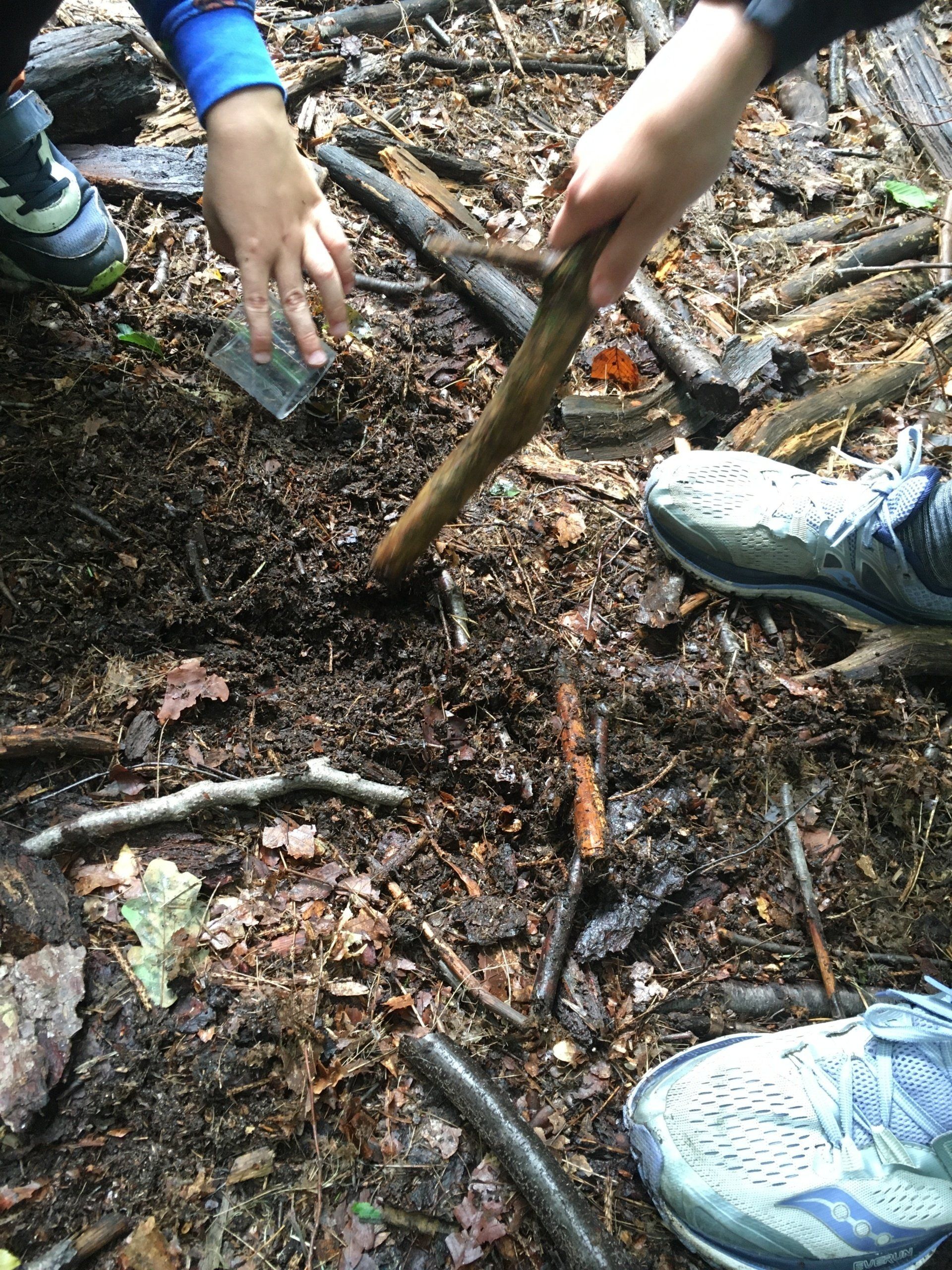 Es wurden große Waldbewohner gesucht und auch ganz Kleine. Mit Hilfe von Becherlupen sammelten die Kinder verschiedene Tiere, wie Ameisen, Spinnen und Tausendfüßer und vergaßen dabei (fast) alle Scheu.