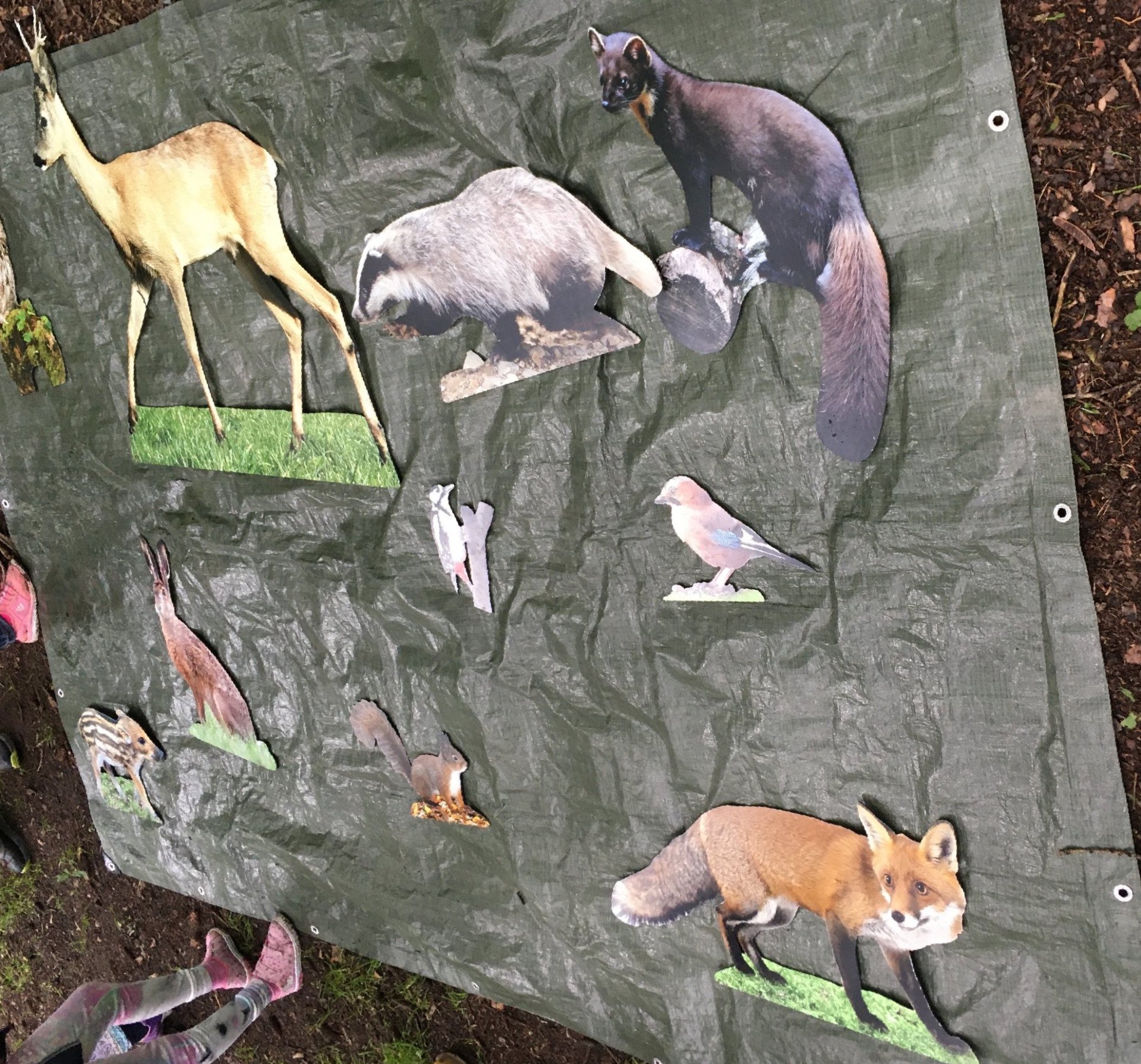Zurück in der Schule legte die Klasse gemeinsam ein schönes großes Mosaik aus den unterschiedlichsten Waldmaterialien.